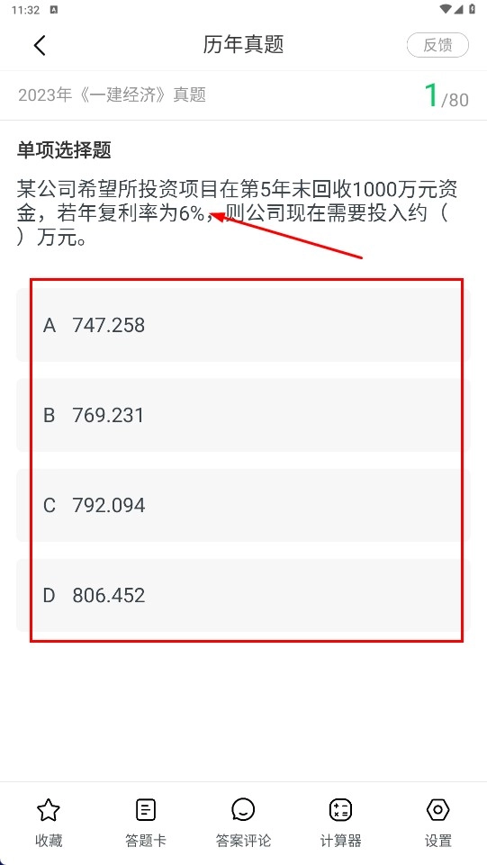 3、进入做题页面后,依据题目要求挑选对应的选项,例如本题就可以选择选项A。