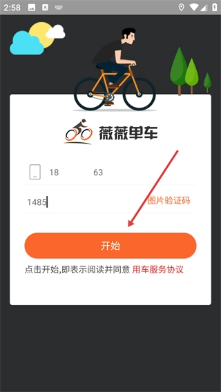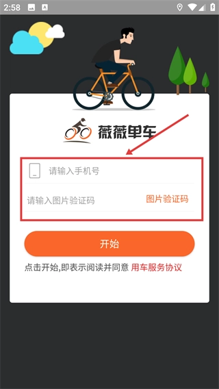 1、在薇薇单车登录页面输入手机号和图片验证码。