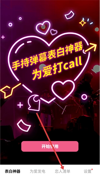 1、打开软件首页后,点击底部的【恋人清单】选项,即可进入恋人清单功能页面。