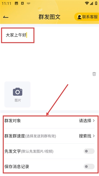 1、点击【群发图文】选项,进入群发图文设置界面。