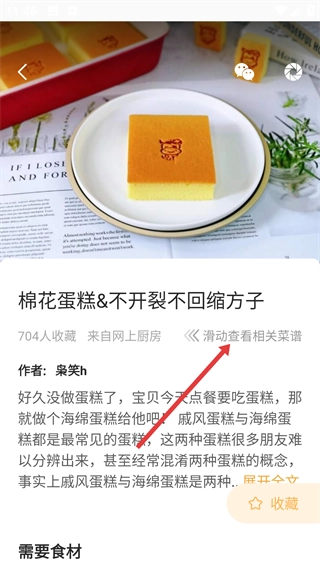 进入菜谱详情页后,能够查看该菜谱的详细介绍,通过滑动操作还可以浏览相关的菜谱内容。