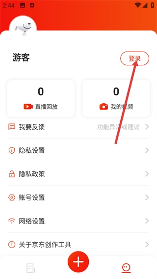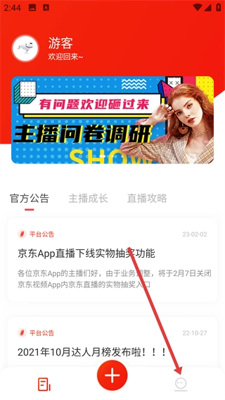 2、进入【京东创作工具】后,点击界面右下角的图标,就能进入个人相关页面。