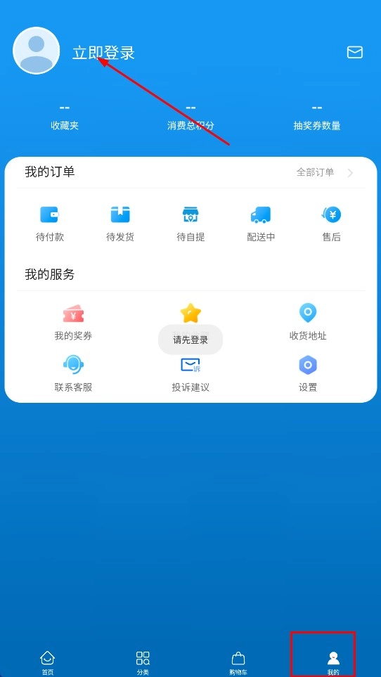 2、点击底部的【我的】功能按钮,接着点击【立即登录】功能按钮,即可进入登录页面。
