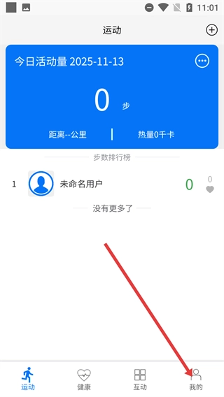 在运动页面中,点击底部的【我的】选项,即可进入个人中心页面,在该页面能查看用户自身信息以及各类功能的入口。