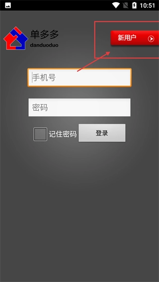 2、在登录页面,点击【新用户】按钮,即可进入用户快速注册页面。