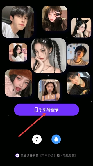 1、打开龙猫交友应用后,仔细阅读《用户隐私保护》指引内容,随后点击【同意并继续】按钮,即可进入登录方式选择界面。