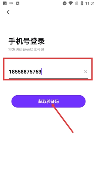 3、进入手机号登录页面后,先输入对应的手机号,接着点击页面上的【获取验证码】按钮,以此来完成登录验证的操作。