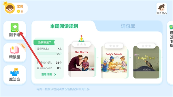 1、打开主界面后,点击左侧的【图书馆】图标,即可进入绘本资源区域。