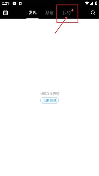 1、在应用界面点击顶部的【我的】选项,要是碰到网络连接失败的情况,可点击【点击重试】来恢复网络,进而进入个人中心页面。
