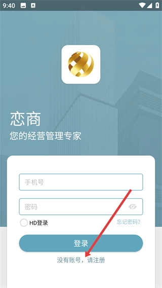 1、打开恋商登录界面后,点击【没有账号-请注册】选项,即可跳转至账号注册页面。