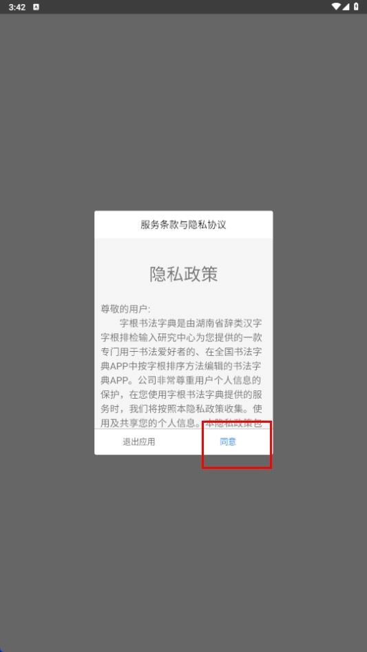 1、点击【同意-功能按钮】,即可进入字根书法字典的主界面。
