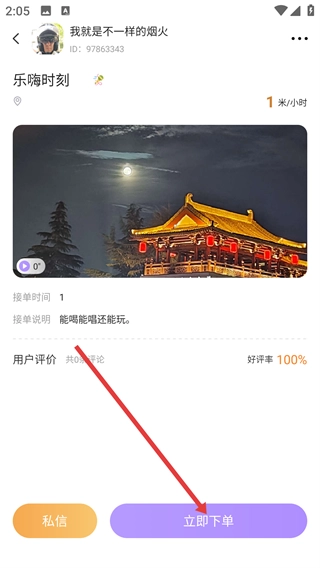 3、在用户详情页点击【立即下单】按钮,即可进入下单页面。