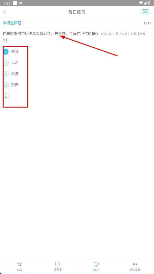 2、每日练习中的单项选择题,需依据题目内容选择对应的选项(例如选择A选项)。