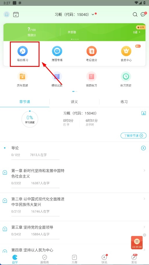 1、点击【每日练习】功能按钮,进入习题练习界面。