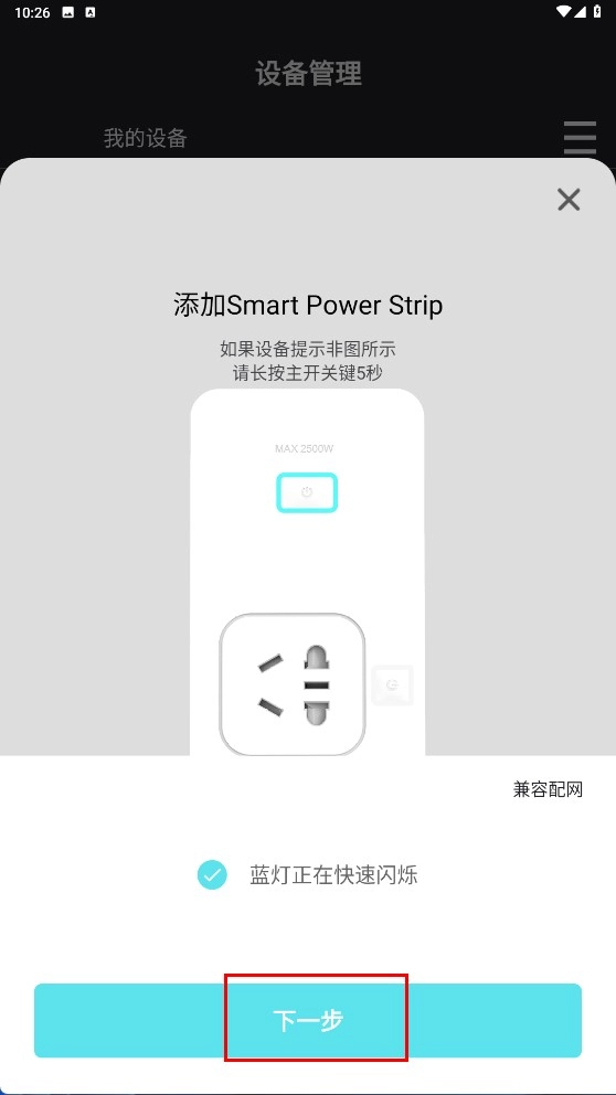 3、进入添加设备的流程页面,确认设备状态无误后,点击【下一步】功能按钮。