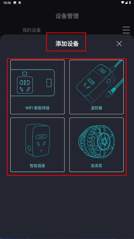 2、进入添加设备页面后,挑选需要添加的设备类型,例如【WIFI-智能排插-设备图标】这类选项。