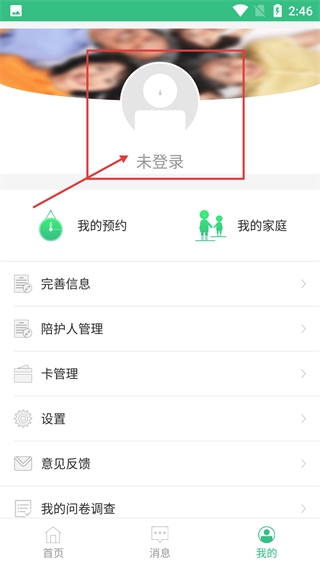 2、进入【我的】页面后,点击【未登录】区域,即可进入登录界面。