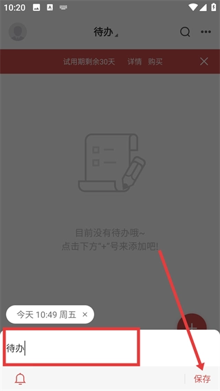4、先设置好提醒时间,接着在输入框内填写待办内容,最后点击【保存】按钮,就能完成待办事项的创建操作。