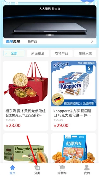 1、进入人人微云首页后,点击底部的分类选项,即可进入商品分类页面。