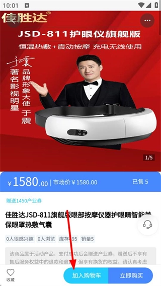 3、在商品详情页,点击“加入购物车”按钮,即可进入商品数量选择页面。