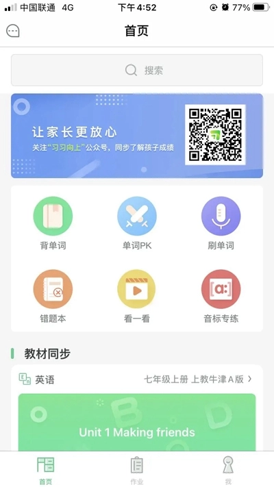 教材同步:支持学习与课本配套的内容。选择对应的书籍和单元后,即可学习相应的内容。
