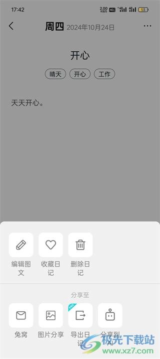 3、在弹出的功能选项里,找到“删除日记”这一选项并点击它。