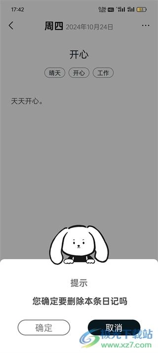4、最后点击确定选项即可删除日记内容。