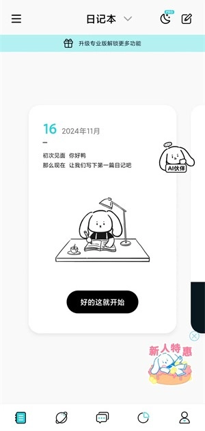 1、在首页中可以直接点击开启记录日记。