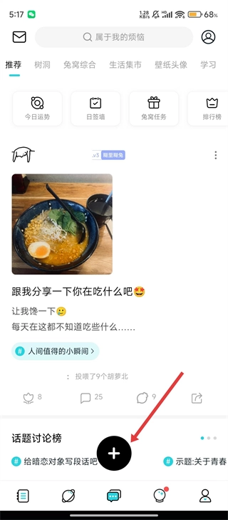打开Moo日记后,我们点击底部的加号按钮,就可以准备发布帖子了。