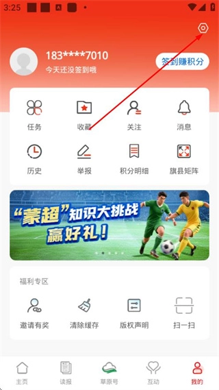 2、进入个人页面后,点击右上角的设置图标,即可进入设置界面。