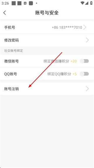 4、进入账号与安全页面后,点击账号注销选项,即可跳转至注销账号的申请界面。