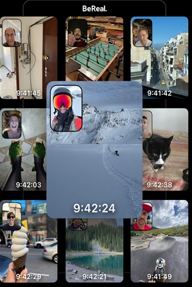 BeReal是一款在海外地区相当火爆的社交应用,它的玩法十分独特且富有创意。这款软件每天会在随机时间推送一次拍摄提醒,此时所有用户需在2分钟内记录下自己当下的真实状态——通过前后双摄像头同时拍摄,并且全程零滤镜、零编辑,照片还会在24小时后自动消失。用BeReal记录生活就像开盲盒一般,既充满未知的惊喜又带着点小刺激;拍摄时既没有美颜、滤镜功能,也无法裁剪画面,更不允许从相册选取照片,只能直接拍摄原图发布。你敢来尝试这个真实的挑战吗?