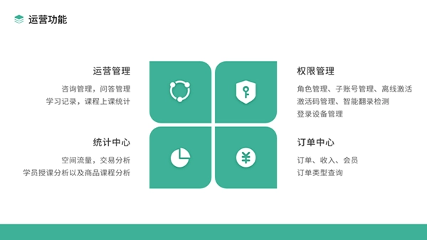 让教学运营管理形成完整闭环,提升教学管理效率、优化学校盈利模式、完善服务体系。