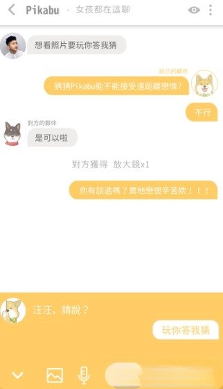 4.用户可在聊天室内与匹配对象展开互动,随着对话的推进逐步解锁对方的照片。