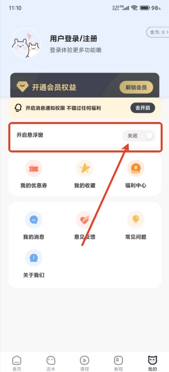 3.打开悬浮窗开关。