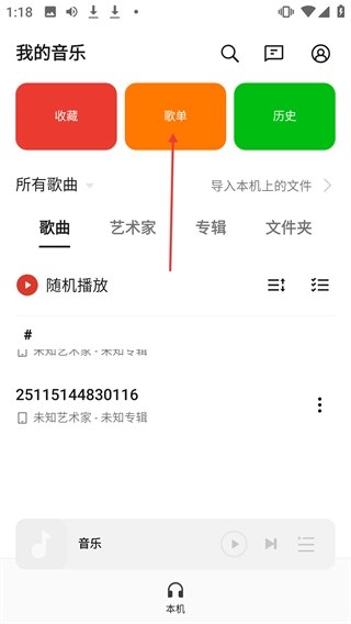 1、进入【我的音乐】界面后,点击【歌单】按钮,即可进入我的歌单页面。