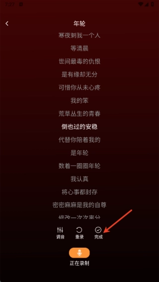 3、接着开始录制歌曲,此环节至少要录制20秒以上,录制结束后点击完成按钮;
