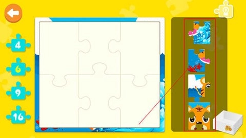 3、儿童模式里的辅助底图功能,目的是为宝宝提供更多拼图方面的帮助。