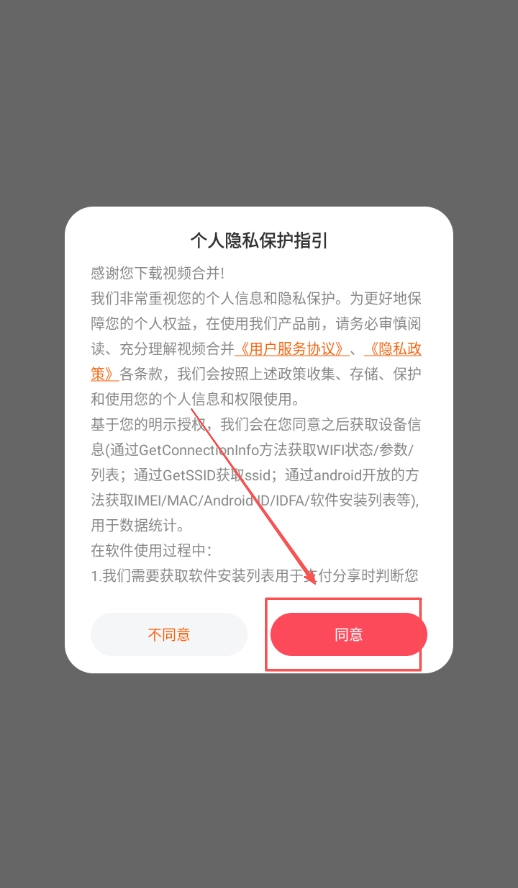 打开视频合并剪辑精灵后,首先找到弹出的软件协议内容,仔细阅读条款细节,然后点击同意按钮,完成协议确认这一环节。