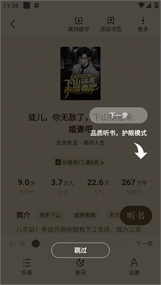 在当前网络状况良好时,可以直接把书本保存下来,这样存好全本后,就能在空闲时间随时阅读了。