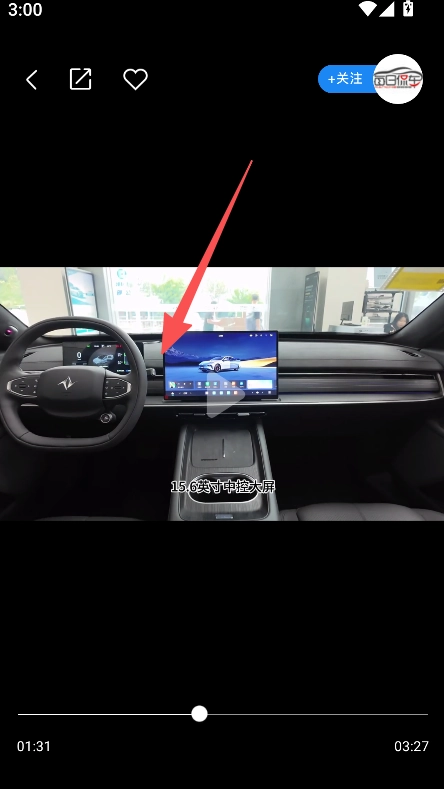 3、观看视频,了解车型细节如中控屏等信息。