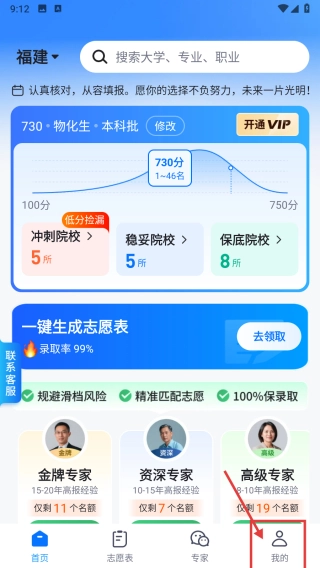 1、找到志愿填报相关入口并打开,点击页面底部的“我的”选项,即可进入个人中心页面。