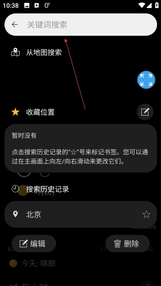 2、进入搜索界面后,点击【关键词搜索】对应的输入框,为输入城市名称做准备。