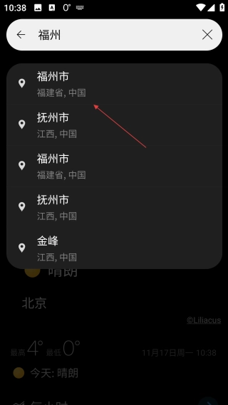 4、进入城市界面后,就能查看该城市的天气温度、天气状况等信息。