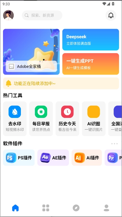 功能集成:把设计学习、实用工具、休闲娱乐与AI对话功能整合到同一应用里。