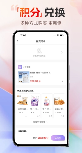用户能够在商城里查看可以用积分兑换的商品,并且完成兑换流程,这样在购物的时候就能更节省开支了。