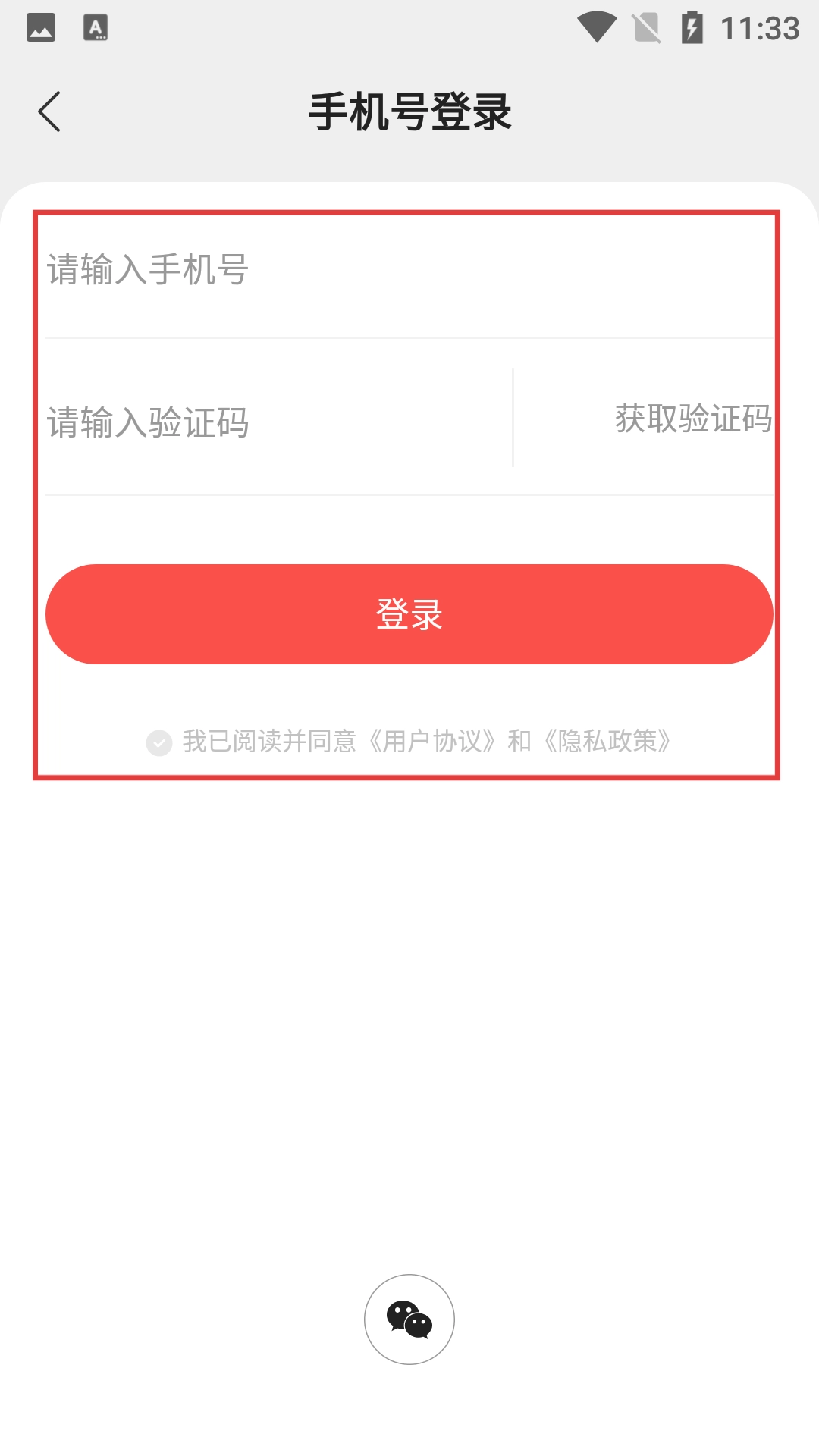 3、在登录选择界面,点击手机号图标,即可进入手机号登录页面,完成手机号验证登录操作。