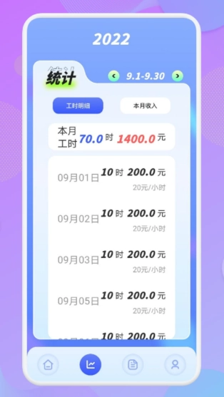 1、工时记录与薪资核算:能够便捷地记录每日的工作时长及具体工作内容。系统会依据你预先设定的薪资标准,自动核算出你当日的劳动报酬。