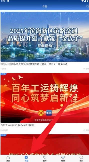 2. 点击底部的专题栏目,就能看到活动专栏、政务宣传、主题策划等相关内容。