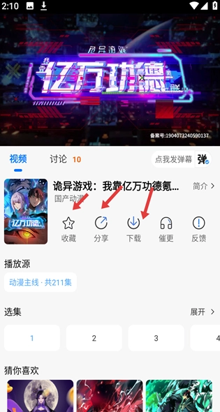 4、如图所示操作,即可开启观看体验,同时支持收藏、分享等功能。